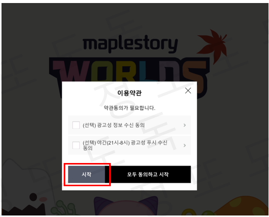 지금 시작을 눌러 메이플랜드를 시작해 줍니다.