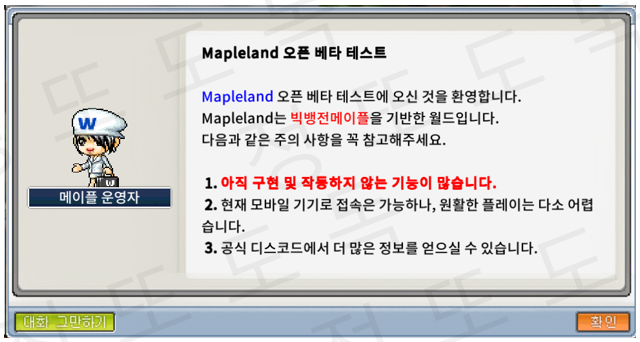 아직 메이플랜드는 오픈 베타 테스트라서 완벽하지는 않다고 합니다.