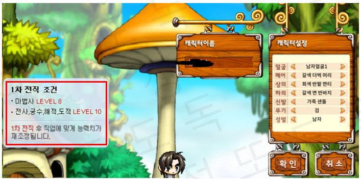 시작하시면 스텟이 자동으로 전사처럼 되어있는데, 1차 전직 후 직업에 맞게 능력치가 재조정된다고 합니다.