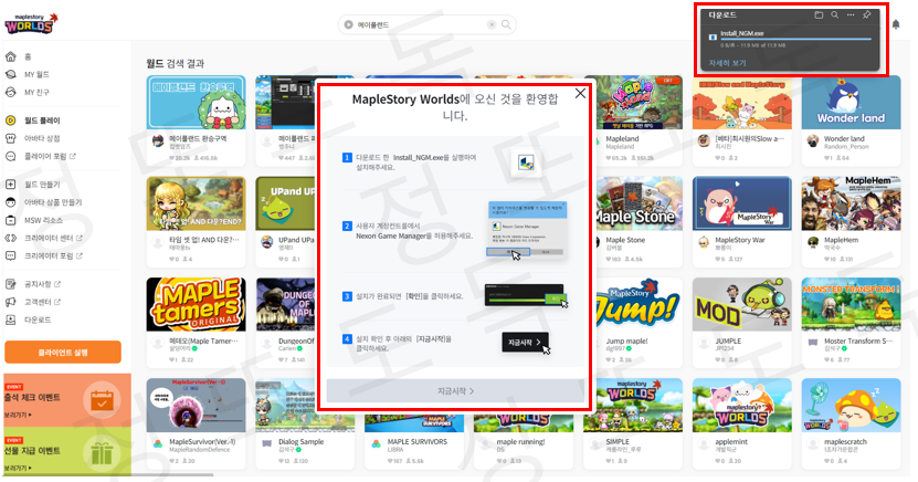 이제부터 메이플랜드 하는법은 그냥 평번한 게임 다운로드 하는 것과 똑같습니다.